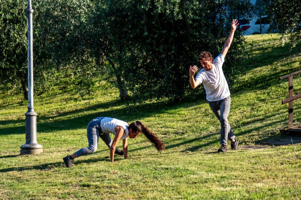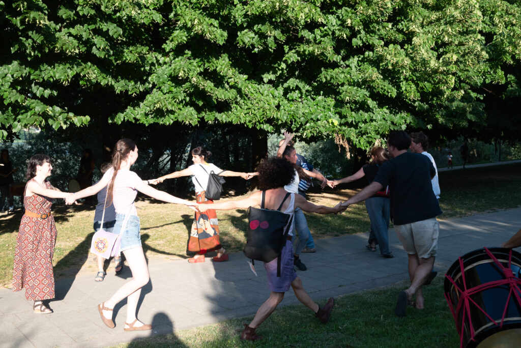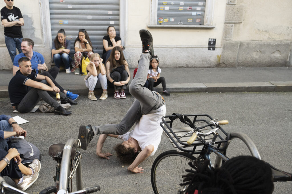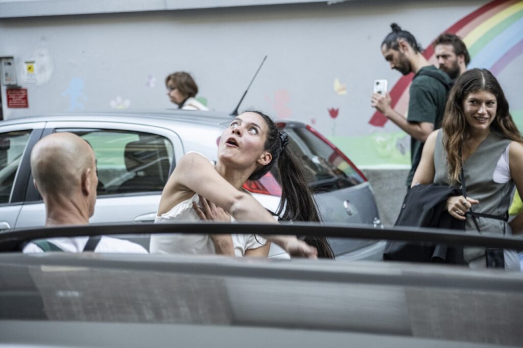 Percorsi Incrociati è una crocevia, un gioco di tracce e tracciati in movimento che si sovrappongono frutto dell’incontro ogni volta diverso tra performer, musicisti locali e luogo. E’ una performance site-specific itinerante in cui danzatori e musicisti interagiscono con gli oggetti, le architetture e le persone che incontrano, coinvolgendo direttamente gli spettatori e invitando chi li segue ad orientarsi, prendere una posizione e collocarsi nello spazio pubblico.