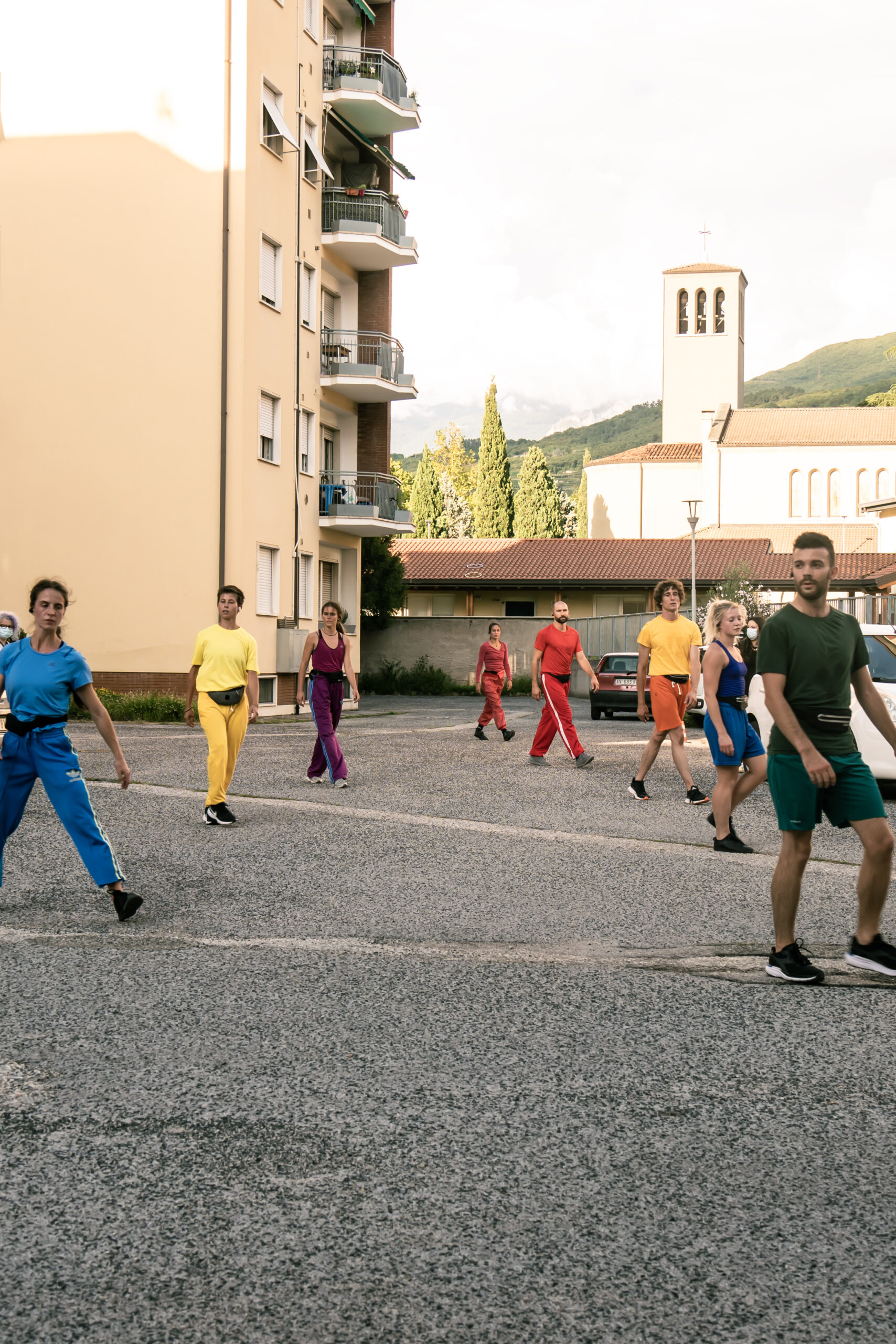 During the research/rehearsal period, the dancers become explorers: they collect physical, musical and verbal testimonies from the inhabitants and transform them into a diffuse performance that takes place throughout the inhabited area, with the aim of enhancing and rethinking it as an extraordinary scenario.
