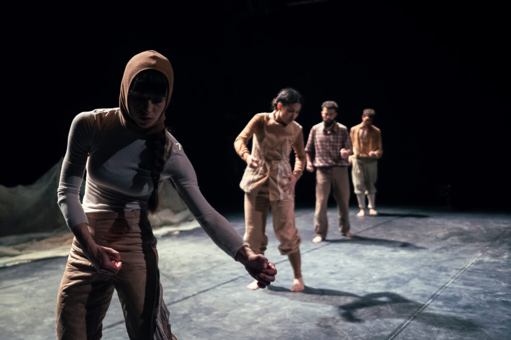 Attraverso una partitura di gesti, parole, e suoni, tra incanto, nostalgia e ironia, il lavoro tocca trasversalmente temi come il cambiamento climatico, la memoria tra presente, passato e futuro e il passaggio generazionale. Ciò che unisce drammaturgia fisica e teatrale sono le memorie personali dei danzatori legate alla montagna – frammenti incompleti espressi attraverso monologhi, dialoghi, musiche, che prima o poi scompariranno lasciando però delle tracce, come quelle che ghiacciai ormai in via d’estinzione lasciano nel paesaggio.